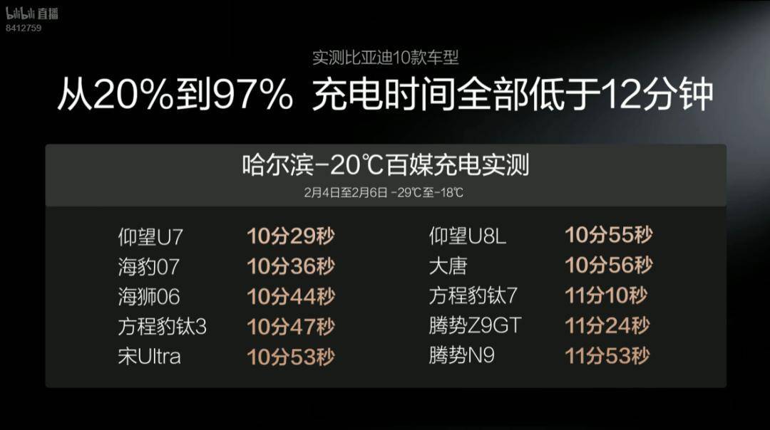 上个月脖子哥也是参加了比亚迪在哈尔滨的闪充冬测,当天的气温大概是 -15℃~-20℃,现场那么多个比亚迪品牌的车型,充电时间确实基本都是 11 分钟左右。
