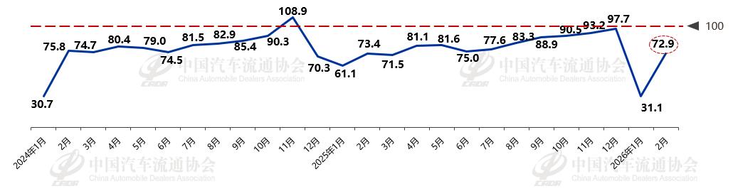 “向新”不仅是跃升的产值,更是消费者实实在在的购买力。中国汽车流通协会发布的2月汽车消费指数升至72.9,较1月明显上升,预示车市正从春节淡季的谷底稳步修复。