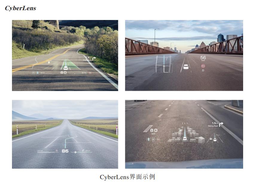 其一是CyberLens(W-HUD),这是一种相对成熟的解决方案,利用挡风玻璃投影技术,直接在前挡风玻璃上显示车速、导航、驾驶辅助警报等基本驾驶信息。