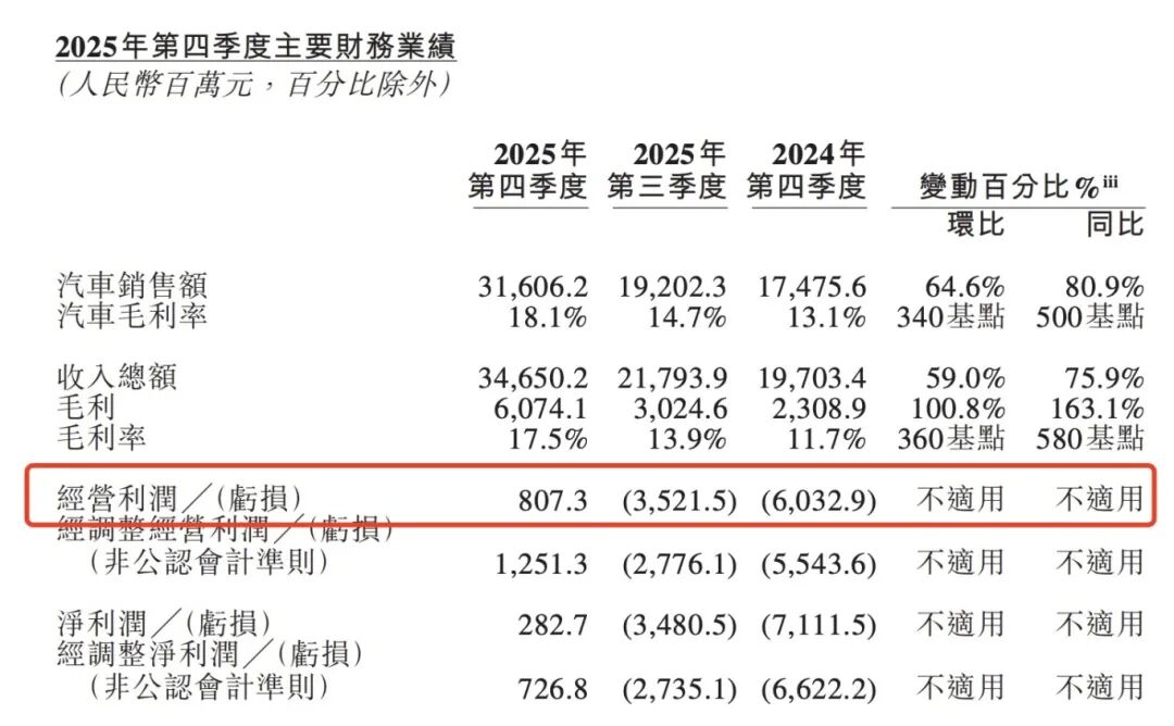 财报显示,2025年第四季度,蔚来实现经营利润8.07亿元,净利润2.83亿元——这是公司成立11年来首次录得单季盈利。