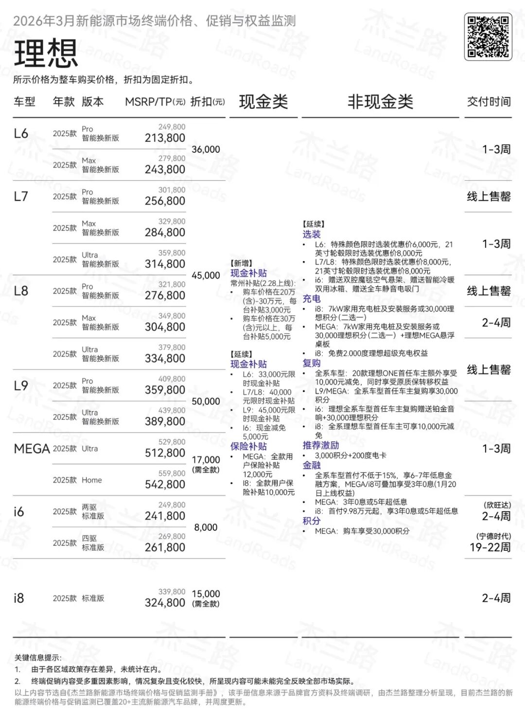 ② 理想仍然还在加大对L系列基本盘车型提供折扣