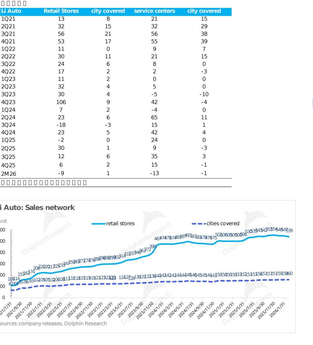 本季度销售和管理费用26.5亿,环比下滑1.2亿元,低于市场预期的27.4亿元,可能主要因为a. 四季度理想对营销部门进行了一定的裁员,营销部门合并后,直营门店一线销售淘汰 15%),缩减了薪酬开支;b. 新车上市相关的营销费用投入的减少(主要集中在三季度);c. 新增渠道铺设上,理想已经从前期的“激进扩张”转向“谨慎经营”。四季度,全国仅新增 6 家零售中心和 15 家服务中心。而进入 2026 年一季度后,理想甚至裁撤并优化部分低效门店来降低成本。