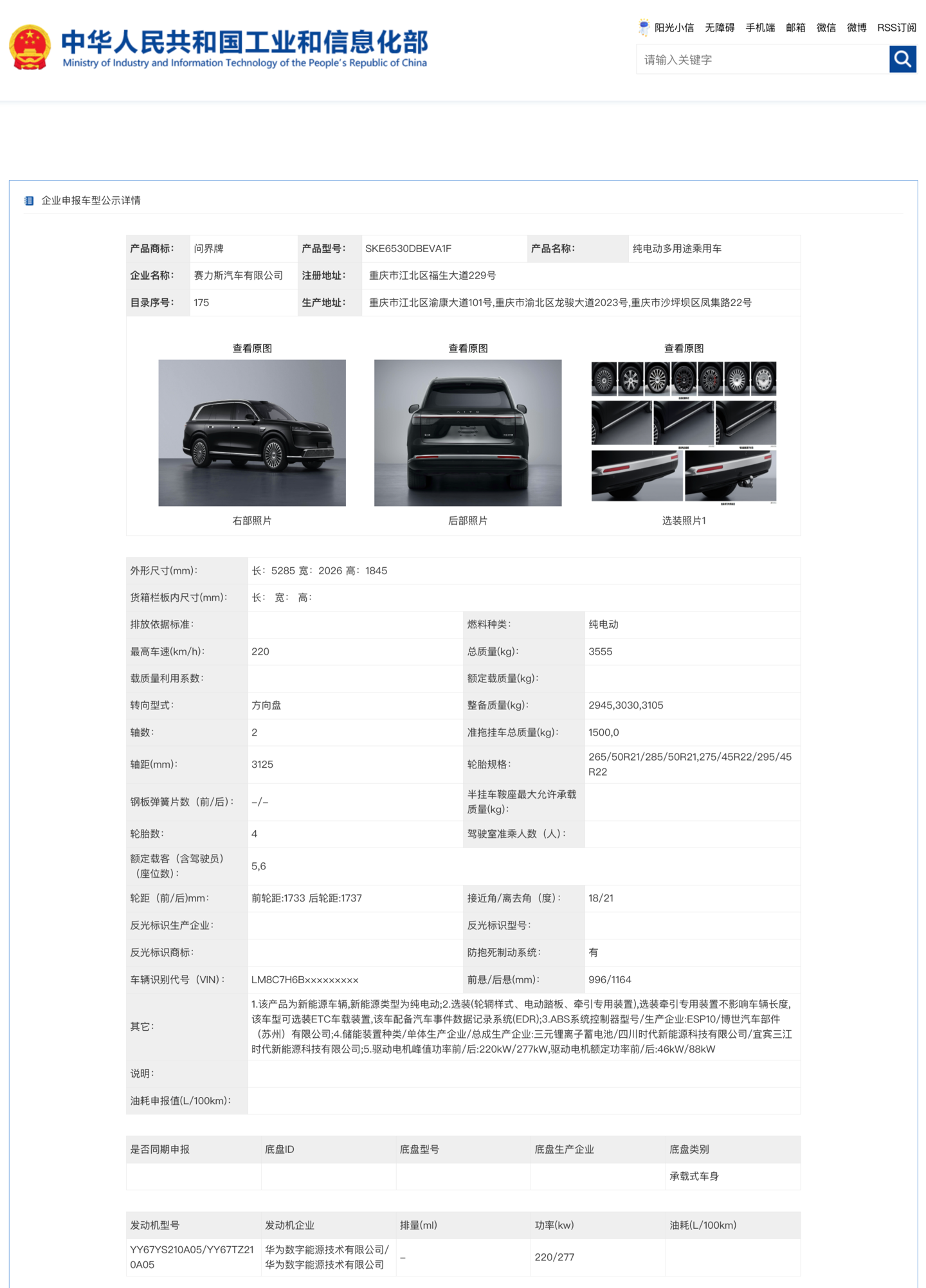 增程版:搭载重庆小康动力的 1.5T 增程器,排量 1496ml,功率 118kW;前后电机功率分别为 220kW/277kW。