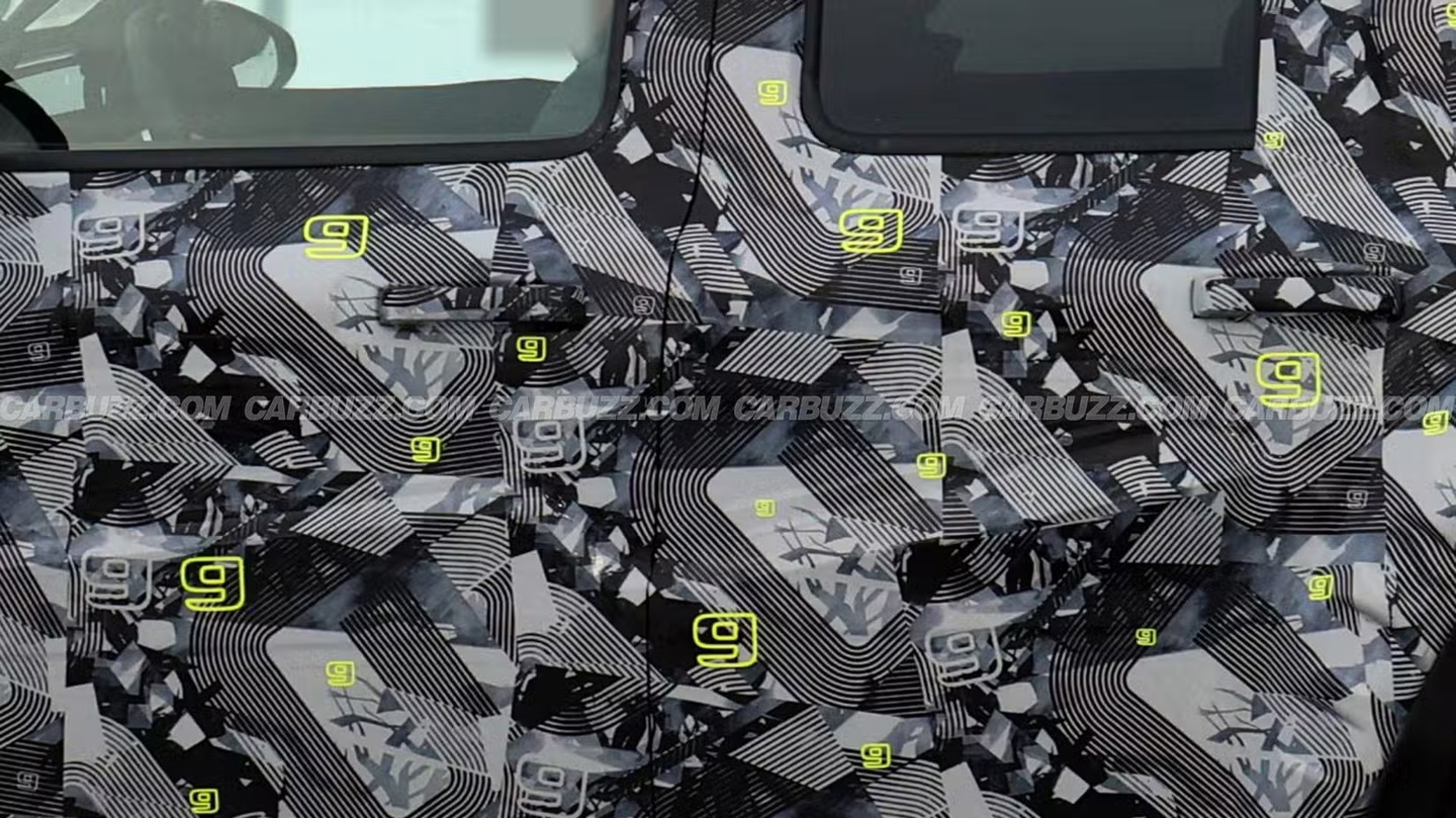 据介绍,这次的测试车伪装贴纸明显变薄,车身细节也更加清晰,而且伪装图案本身包裹着大量酸绿色和浅灰色的小写字母“g”,不禁让人猜想新车命名为否为“g-Class”。