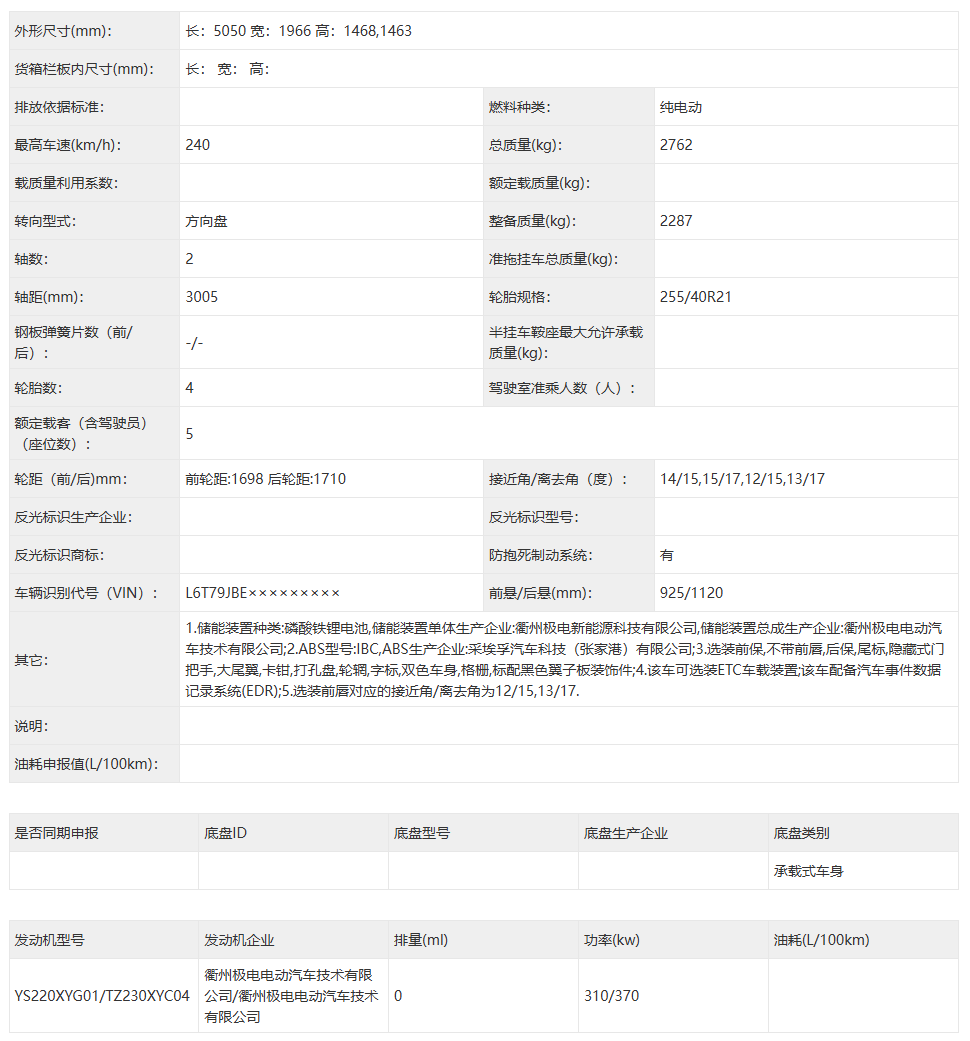 IT之家 3 月 14 日消息,工信部昨晚发布第 405 批《道路机动车辆生产企业及产品公告》新产品公示,IT之家发现了领克 10 纯电版车型的身影。