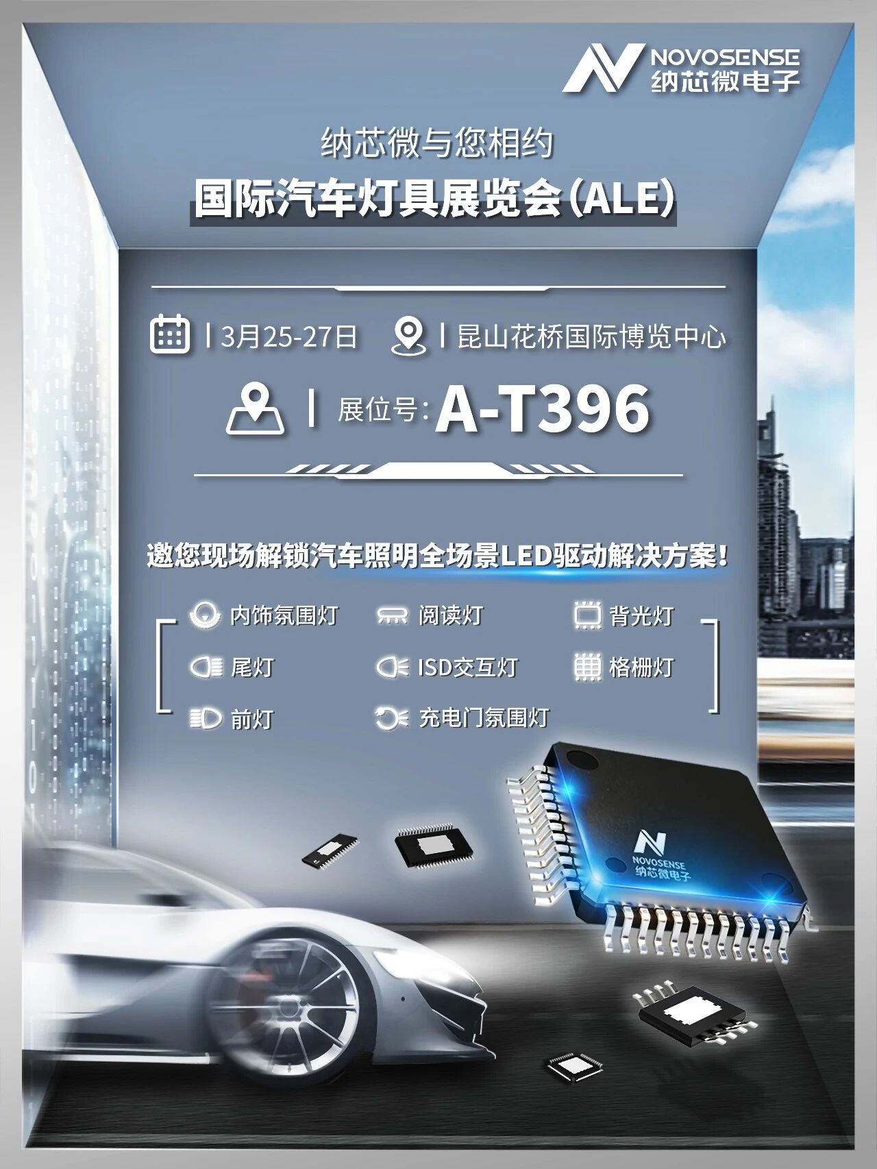 3月25日–27日,2026国际汽车灯具展览会(ALE)即将开幕,纳芯微诚邀各位行业伙伴莅临参观!
