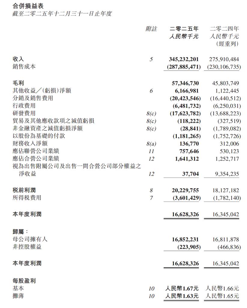 ▲吉利汽车集团2025年财报