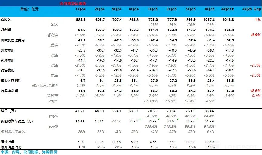 尽管收入与毛利改善,但吉利的三费(研发、销售、管理)环比大幅增加,核心运营利润显著低于预期。
