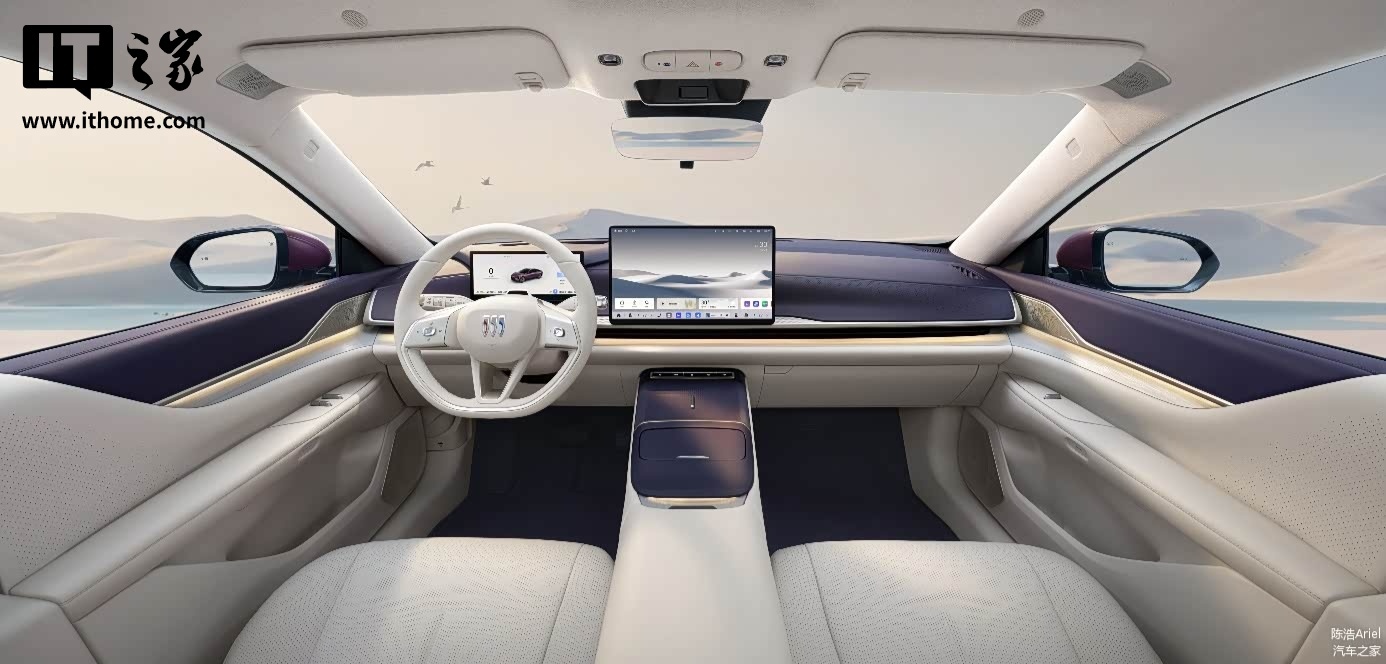 内饰方面,在售别克至境 L7 配备 10.25 英寸液晶仪表和 15.26 英寸中控大屏,搭载高通最新的 SA8775P 芯片,算力可达 72 TOPS,支持分屏显示,实现主副驾专屏专用,还配有 50 英寸全景 AR-HUD 系统、Momenta R6 飞轮大模型。