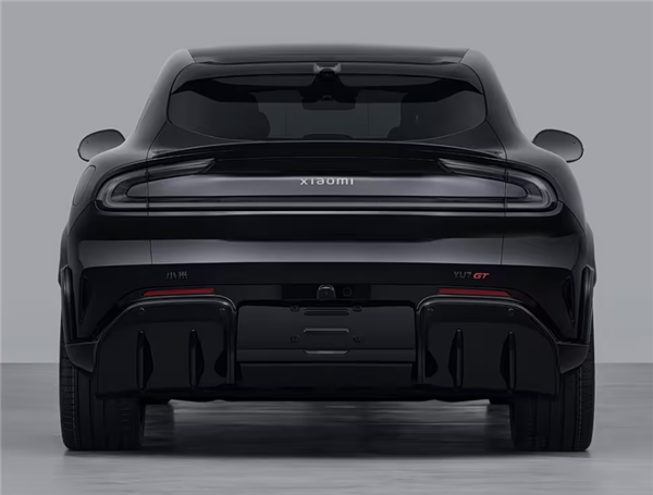 车尾配备贯穿式尾灯,下方印有“XIAOMI”与“YU7 GT”标识,后保险杠采用扩散器式设计,搭配了双边共两出的通风口造型。