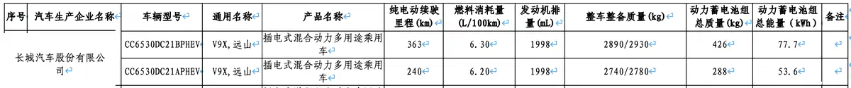 IT之家 3 月 19 日消息,长城魏牌全新旗舰车型 V9X 现身工信部《减免车辆购置税的新能源汽车车型目录(第二十八批)》,该车定位大型插电式混合动力 SUV,搭载 2.0T 超级 Hi4 混动系统,纯电续航里程提供 240km 与 363km 两种版本。