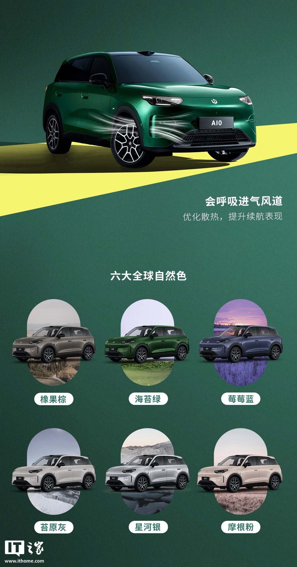 在车身配色方面,零跑 A10 提供海苔绿、橡果棕、莓莓蓝、苔原灰、星河银和摩根粉六种个性化选择。