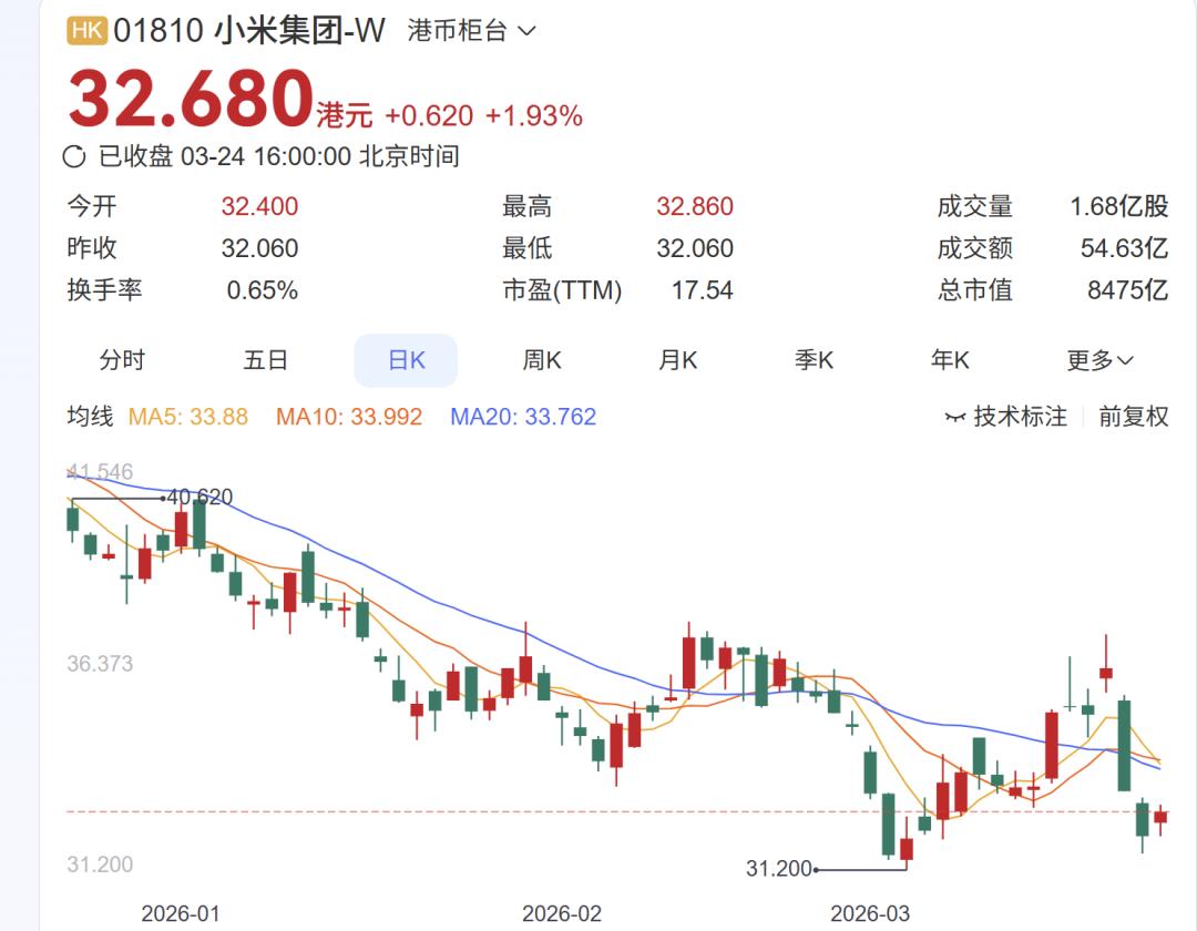 更严峻的是,交银国际直接将小米目标价调低至37港元,评级降至“中性”,理由是手机业务受存储涨价影响超出预期,预计2026年手机毛利率可能跌至6.8% 。