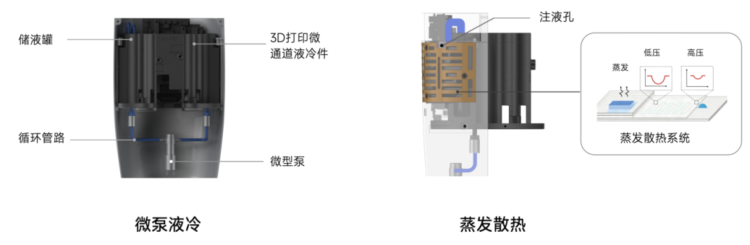 在常规被动散热外,小米尝试模拟人类汗腺这种高效方式来进行主动散热(室温下 1 mL 水蒸发可带走 2000 焦以上热量),在紧凑的小臂结构中,采用金属 3D 打印制作液冷循环通道,通过微泵将电机热量转移至蒸发区,利用蒸发吸热快速降温。