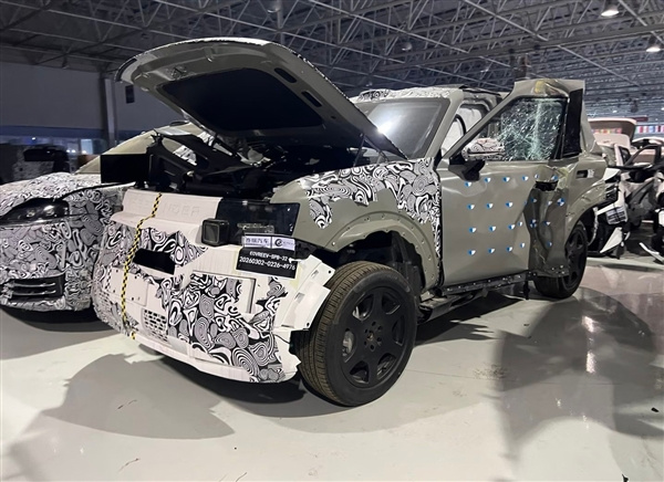 这一品牌将复活“神行者”之名,用于一系列电气化跨界车型。此次曝光的测试车损毁严重,不过仍能看出其明显延续了神行者的风格设计,拥有方正车身比例和前后方形灯组,前脸灯组造型也与奇瑞此前公布的设计一致。图片显示,新车内饰配备悬浮式中控屏,中控台前方还有一块细长的远端屏。