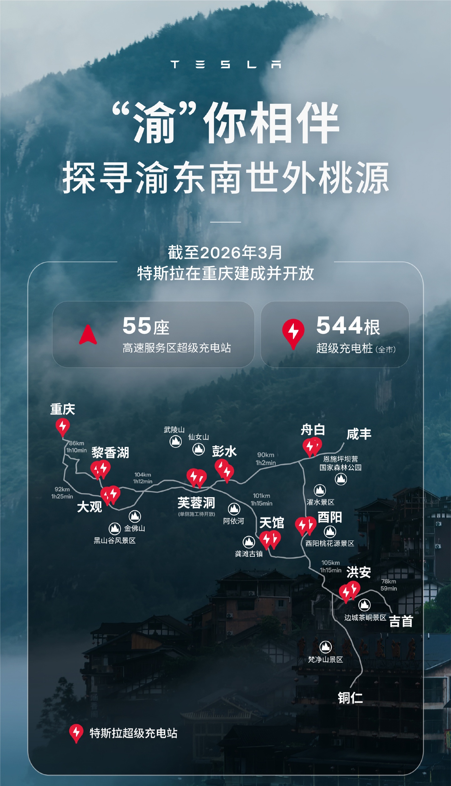 IT之家 3 月 28 日消息,特斯拉今日宣布,55 座特斯拉超级充电站在重庆高速服务区落成,面向非特斯拉车辆开放。