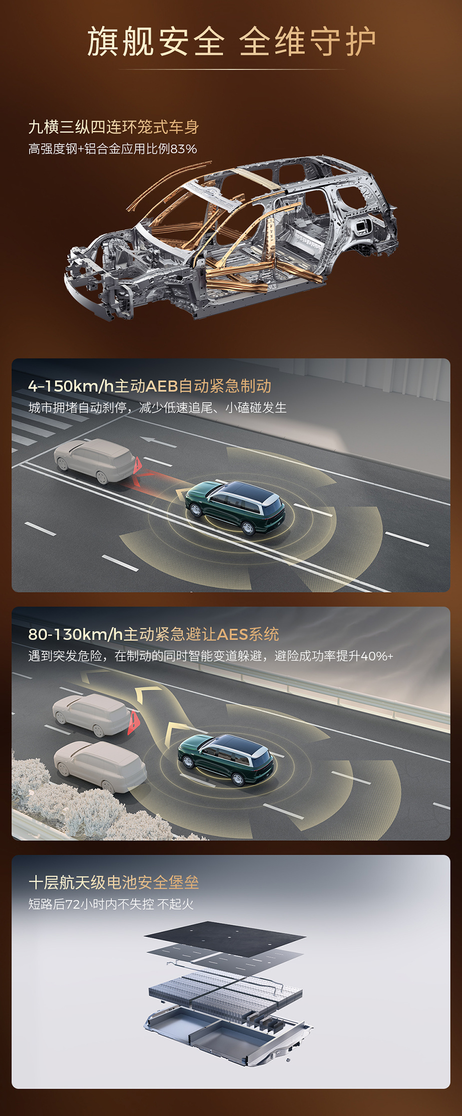 新车长宽高分别为 5252/1995/1780mm,轴距为 3110mm,提供 6 座 / 7 座可选;搭载双 8797 芯片、80.3kWh 超大增程专属电池(宁德时代超混电芯)、车规级森野氧舱、电动开合冷暖冰箱、12 层奢享级座椅、二排右侧真零重力座椅、三排超大空间贵宾座。