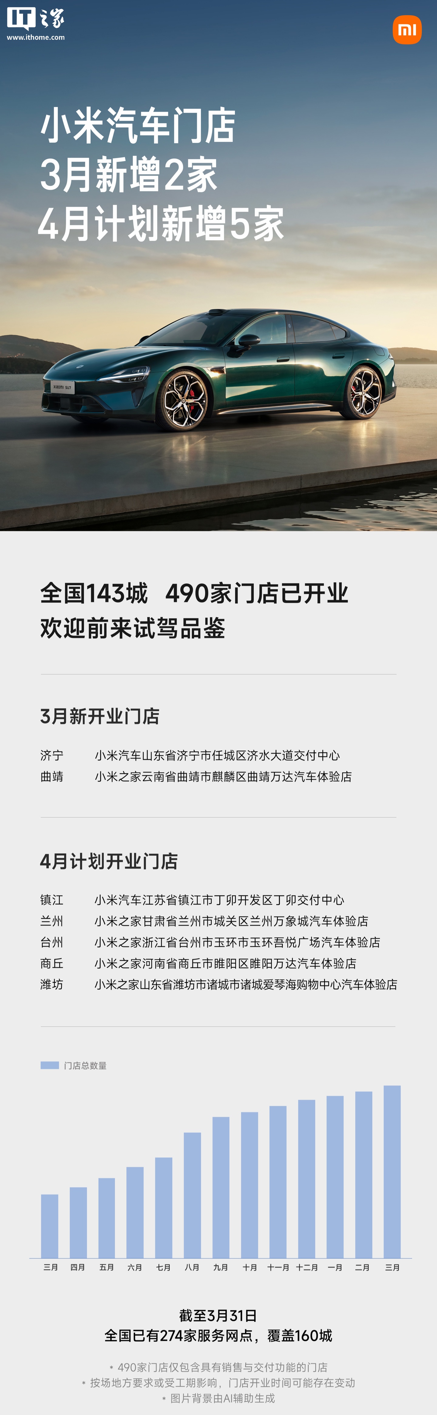 IT之家 3 月 31 日消息,小米汽车官方今日公布了开店新进展: