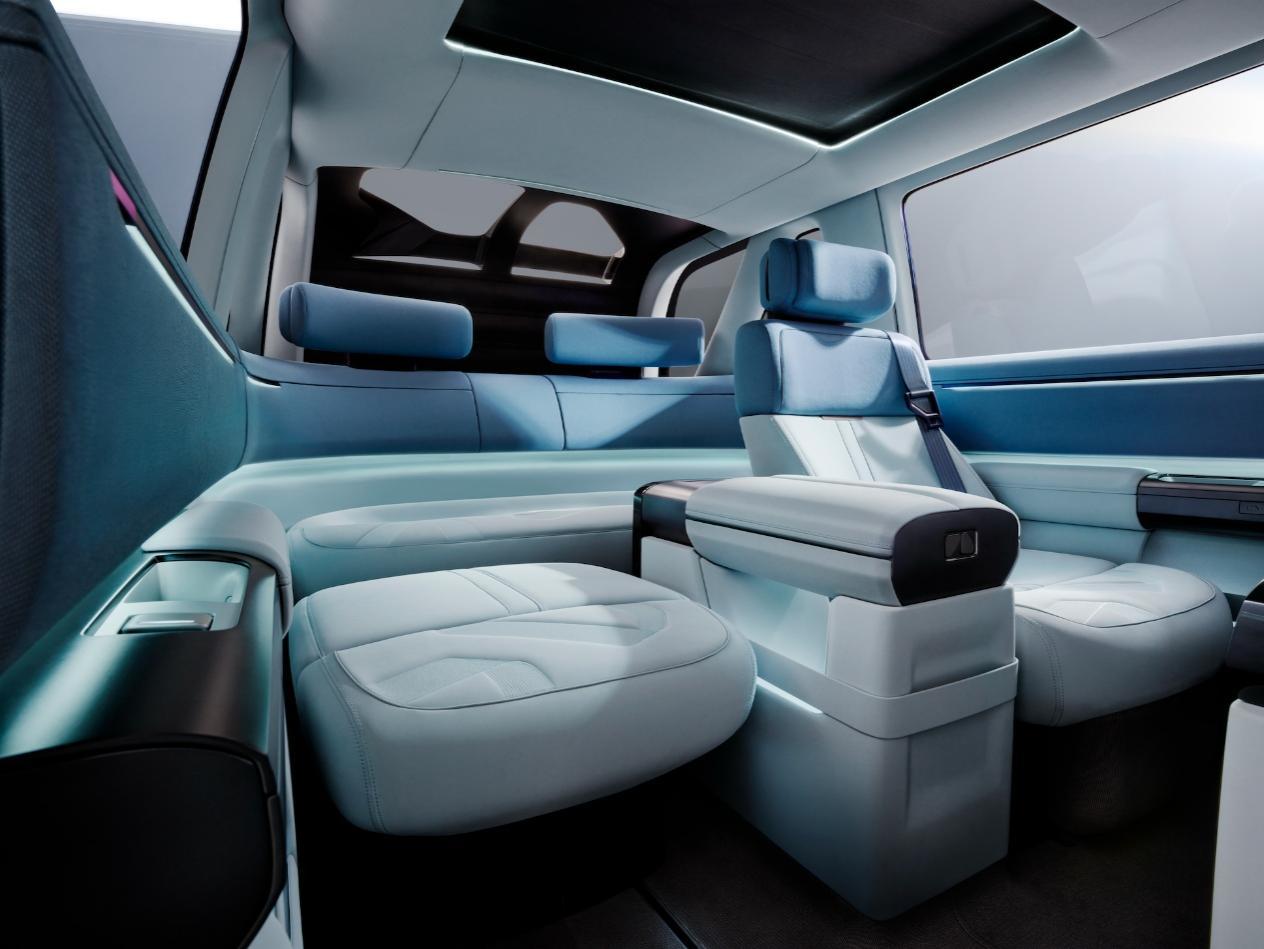 发布会现场,首款概念车Concept 97同步亮相。新车延续了神行者经典的“方盒子”造型,前脸采用封闭式设计,搭配矩形大灯组,标志性的三角窗元素得到保留。内饰方面,Concept 97采用了“指挥官式”驾驶位设计,配备大尺寸悬浮中控屏与贯穿式液晶屏,第三排采用环抱式沙发座椅。