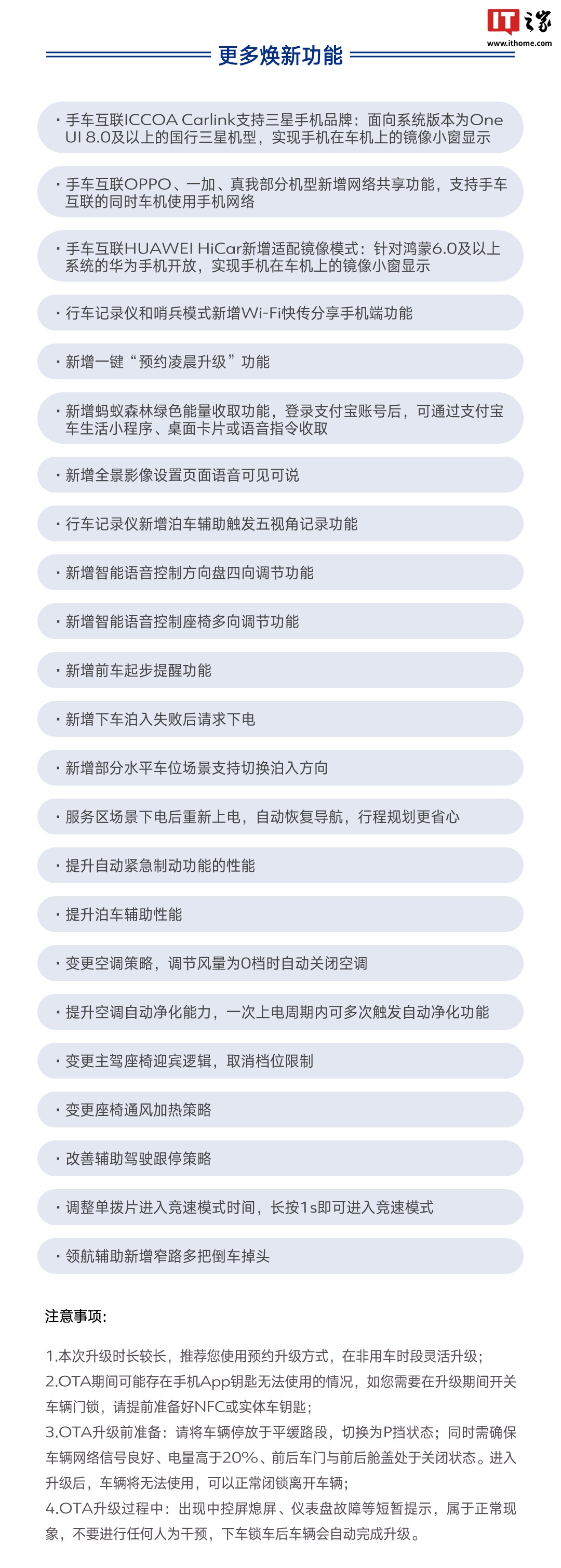 新增快捷指令 App 功能,包括物品遗留提醒、驻车关灯等。