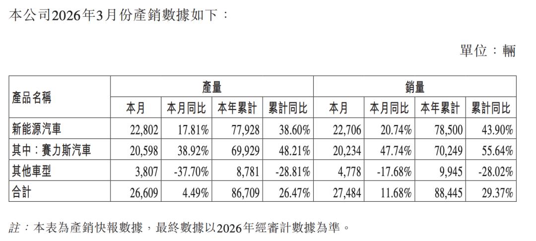 问界品牌是其核心构成,其3月销量可大致作为问界当月表现的参考。