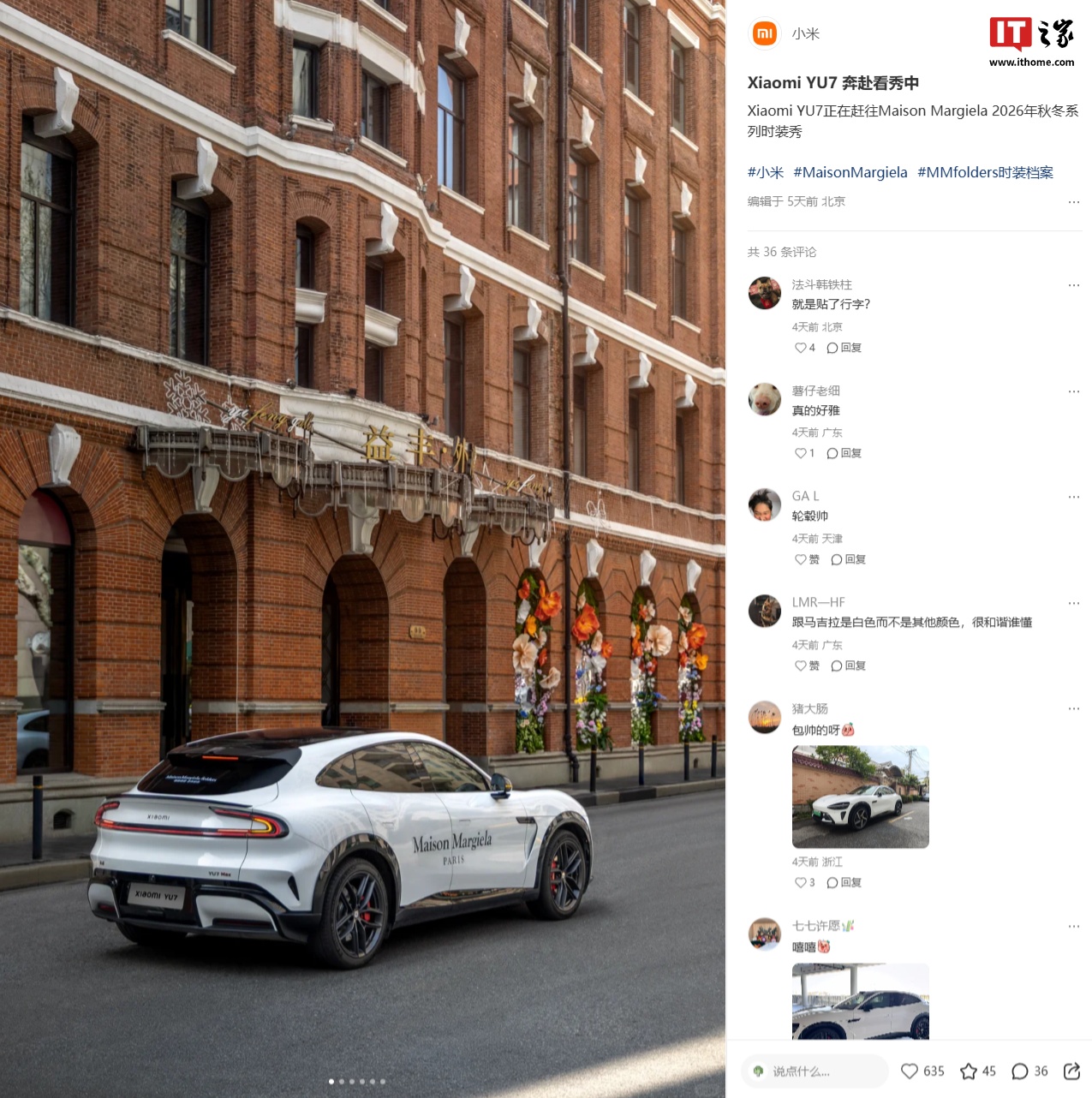 IT之家查询获悉,小米和梅森 · 马吉拉此次的跨界联动较为低调,官方仅在小红书平台官宣了此次活动,并分享了官图。