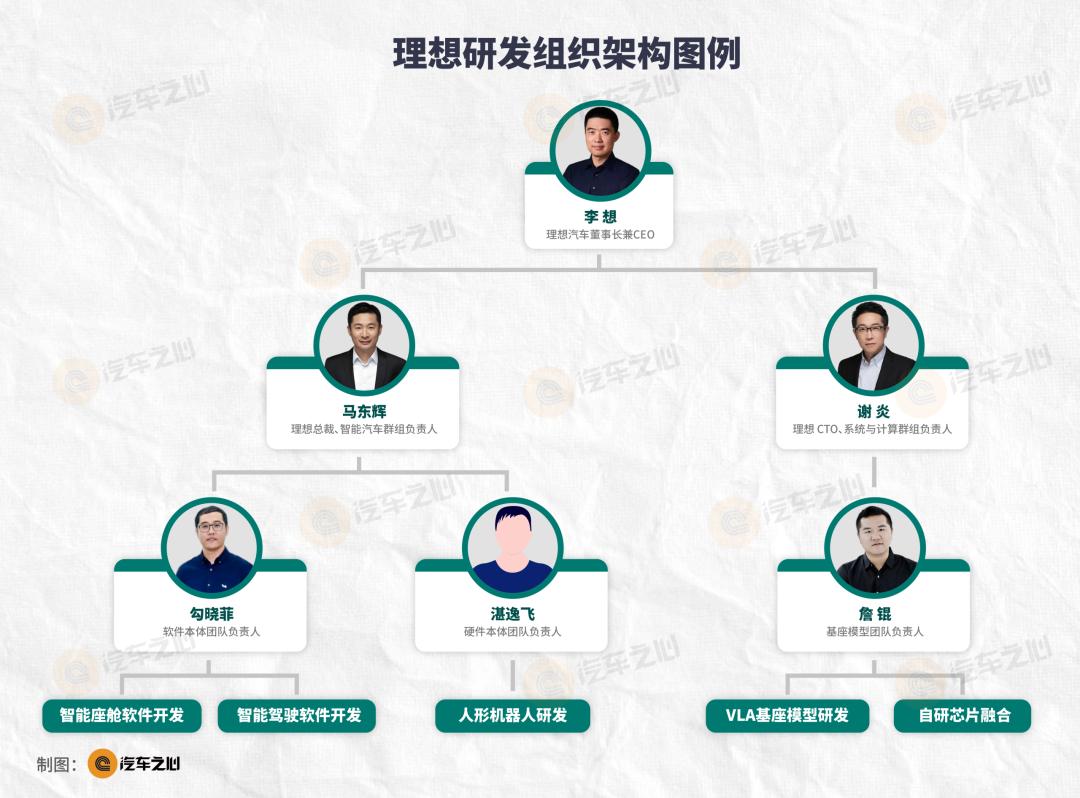 理想更强调组织先行。先完成「大脑—神经—身体」的组织重构,等各板块就位之后,再系统强调模型基座成形,并推进人形机器人产品线。