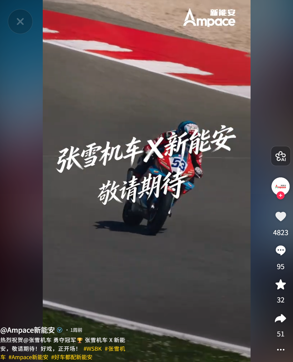 IT之家 4 月 8 日消息,宁德时代旗下厦门新能安科技有限公司(以下简称“新能安”)上周在抖音平台发布视频表示,“张雪机车 x 新能安,敬请期待!好戏,正开场!”一时间,双方是否会合作引发讨论。