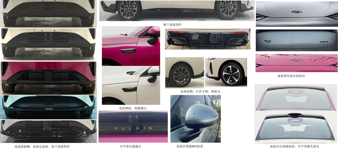 可选装前格栅、前雷达盖板、侧下部装饰件、后下部装饰件、前下部装饰件、红色卡钳、后侧雷达、轮辋、前侧雷达、侧标、侧摄像头、黑色前部标识、黑色尾部标识、内后视镜底座、激光雷达、后视镜 NFC 标签