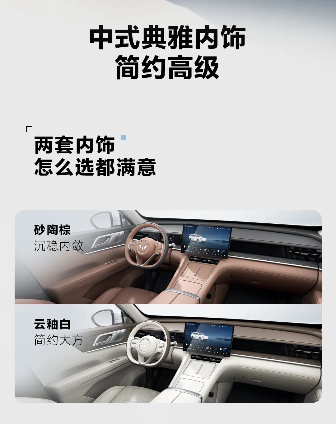 内饰方面,星光 L 全车采用软包覆,座椅采用人体工学设计,内饰提供云釉白、砂陶棕两款配色。