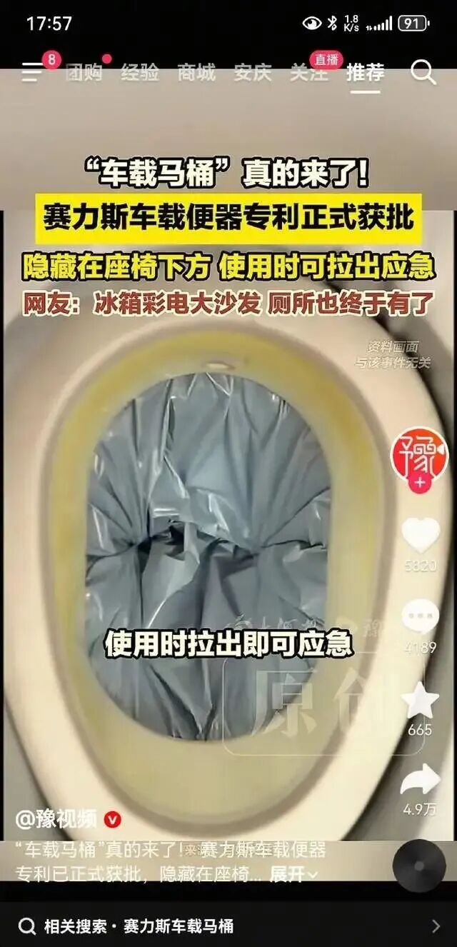 汽车发展到今天,冰箱、彩电、大沙发都卷完了,足疗、座椅按摩、车载KTV、零重力模式一个比一个花哨,赛力斯的车载马桶可以说卡准了一个长期存在的刚需,同时又是友商没有卷到的痛点。