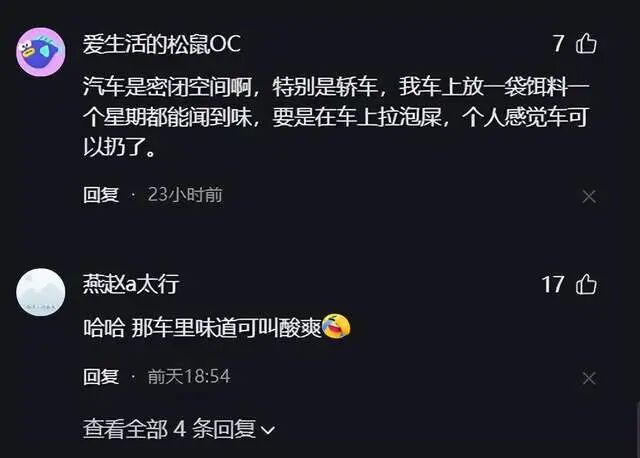 也有人说,如果知道有人在车里拉过,这个车我可能一次都不会坐。“那车里味道可酸爽了。”