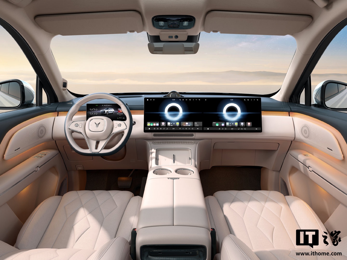 另外,从画面可以看到,岚图泰山 X8 依旧将预装华为鸿蒙 HarmonySpace 座舱系统,中控屏提供完整车控能力,包括座椅、空调、HUAWEI ADS 乾崑智驾等;副驾屏仅提供部分车控能力,同时支持音频切换、视频播放等娱乐功能。