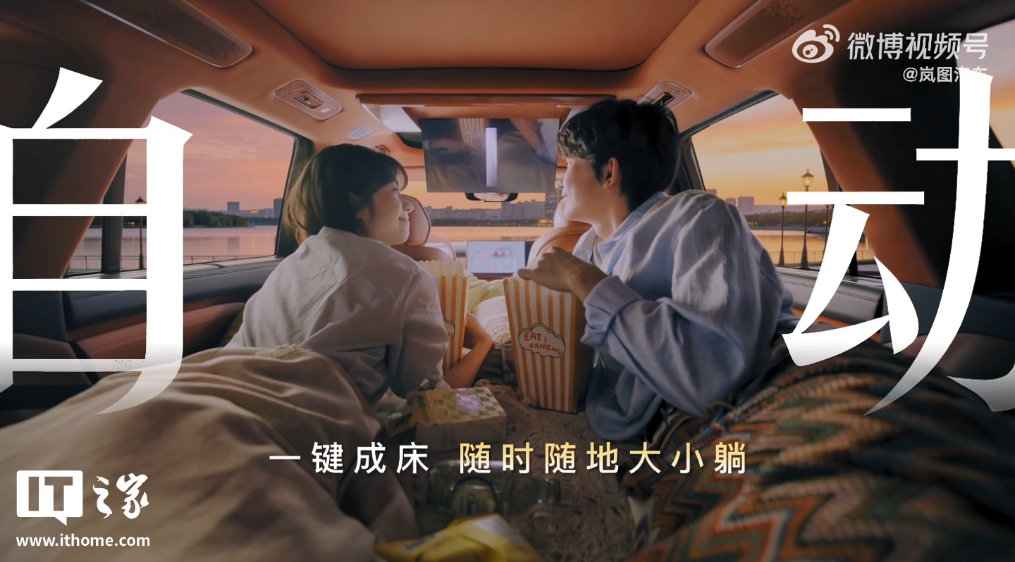 岚图泰山 X8 还会首发下沉折叠式座椅自动“隐身”,同时智眠床垫会自动充气展开,无需人工,一键成床,宣称 1 分钟变 2.1 米大床。
