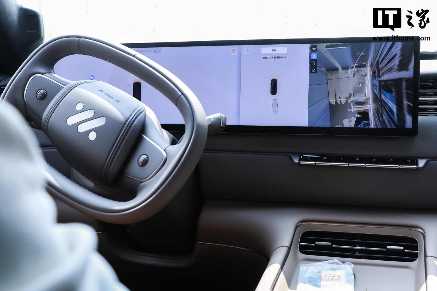 此时,IT之家开启了 IM AD MAX 智驾系统中的全自动泊车功能。依托英伟达 Thor 芯片的强大算力与 520 线超视域激光雷达,车辆迅速识别出了尽头处的微小空位。
