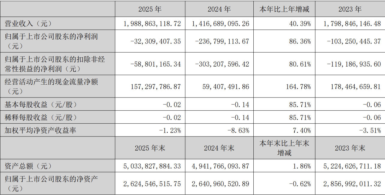 C114讯 4月20日消息(颜翊)上周五晚,高新兴发布2025年年度报告。报告期内,公司实现营业收入19.89亿元,同比增长40.39%;归属于上市公司股东的净利润-3231万元,归属于上市公司股东的扣除非经常性损益的净利润为5880万元,分别较上年同期减亏86.36%、80.61%。
