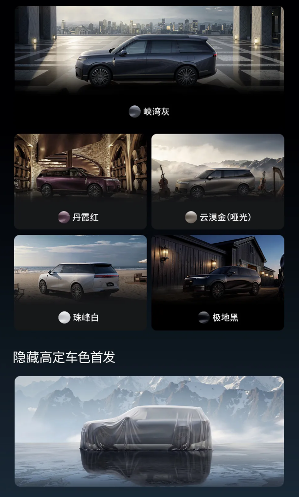 动力方面,新车提供纯电与增程双版本选择。增程版搭载 1.5T 增程器,纯电续航达 430km,综合续航超过 1585km;纯电版基于 800V 高压碳化硅平台,CLTC 续航最高可达 750km,支持 5C 超充技术。全系标配双腔空气悬架与 CDC 阻尼调节,兼顾舒适性与操控支撑。