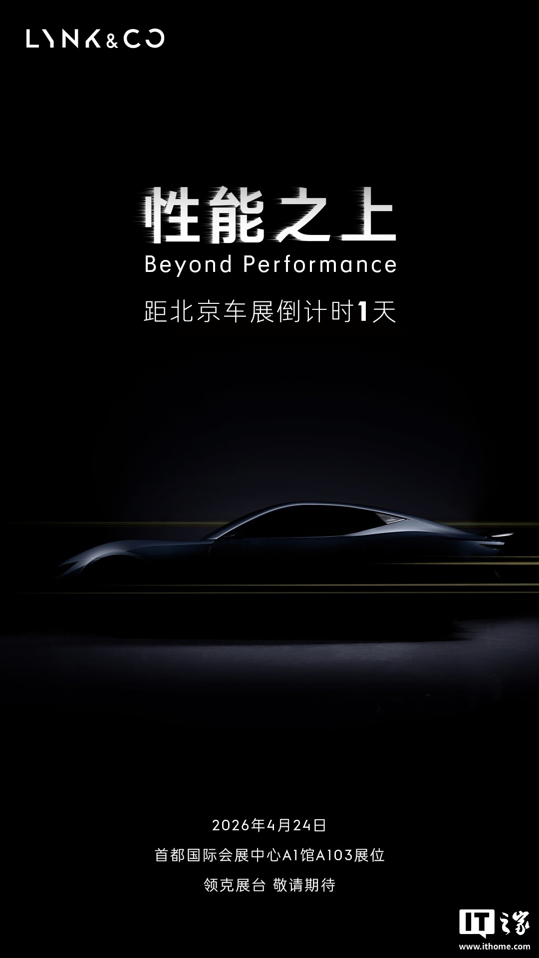 IT之家 4 月 23 日消息,领克汽车官方今日宣布,领克第一款 GT 概念跑车将于明天在 2026 北京国际车展亮相(首都国际会展中心 A1 馆 A103 展位领克展台),号称“十年领克,献礼热爱”。