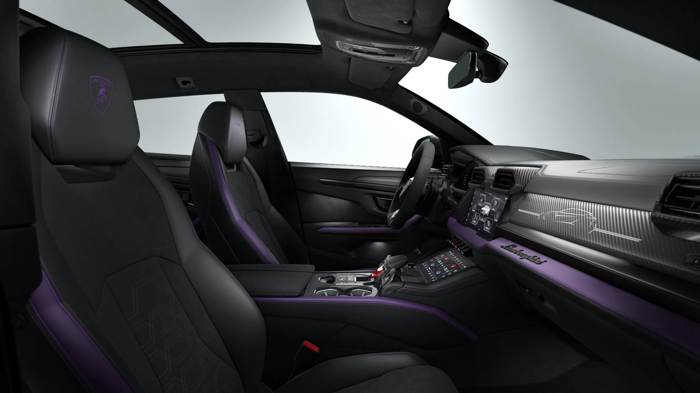 车内其他看点还包括碳纤维饰板、副驾前方的 Urus 图案装饰,以及一块纪念 Ad Personam Studio 成立 10 周年的碳纤维铭牌。车门饰板、仪表区域和中央通道也都可以继续选装更多碳纤维装饰。