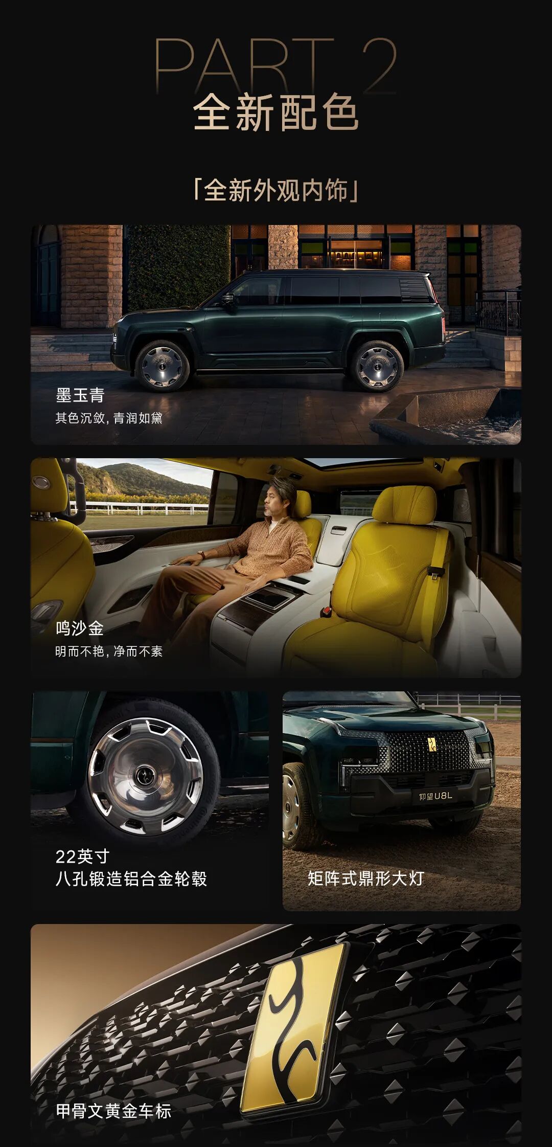 仰望 U8L 鼎藏版采用四座布局,配有“同级最阔双零重力座椅”,即将面向客户开启专属定制化服务。