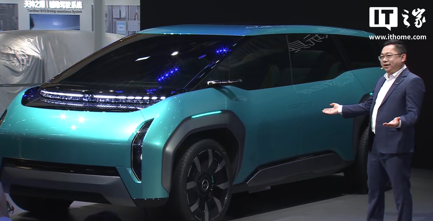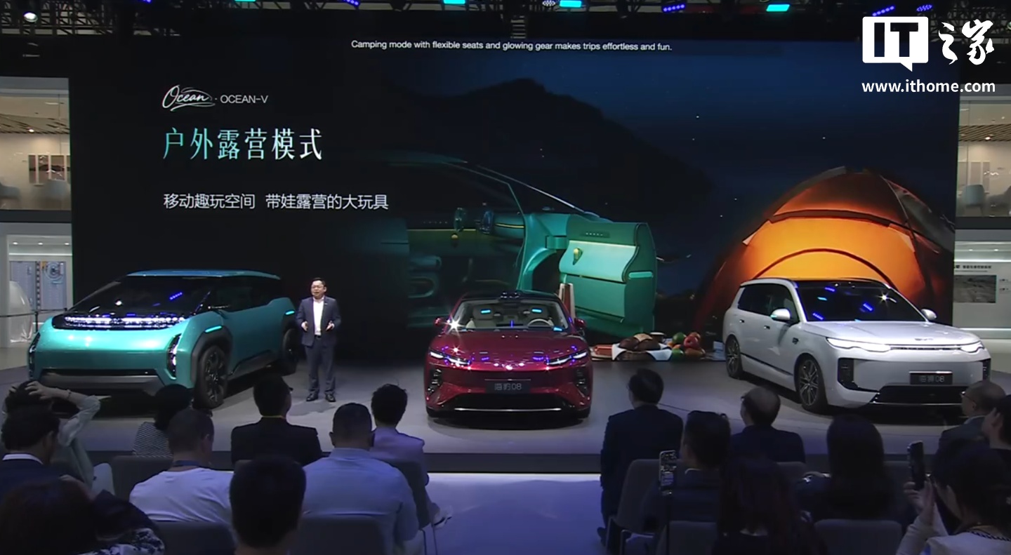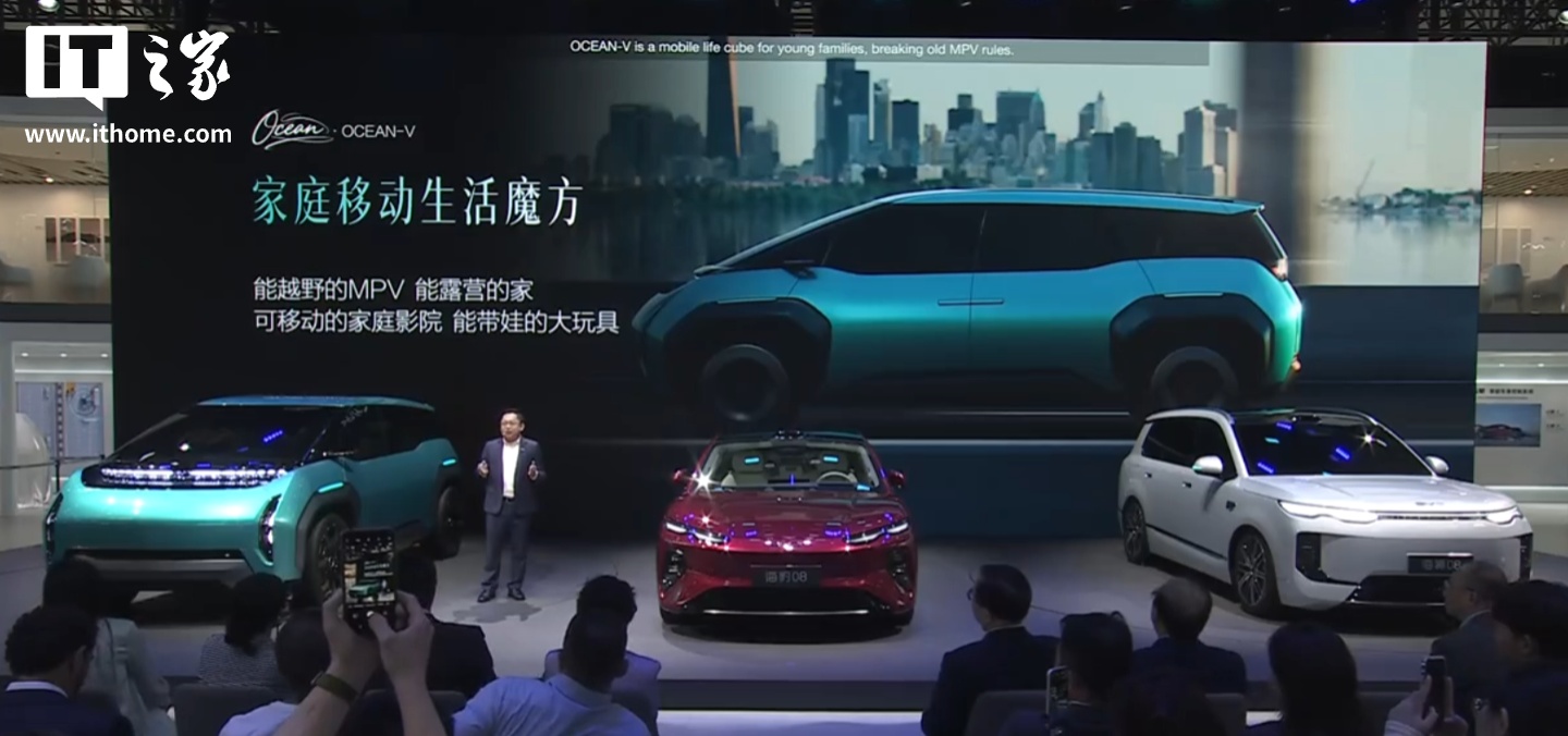 IT之家 4 月 24 日消息,在今日的 2026 北京国际车展上,比亚迪海洋网发布了一款 Ocean-V 概念车,宣称是“能越野的 MPV、能露营的家、可移动的家庭影院、能带娃的大玩具”。