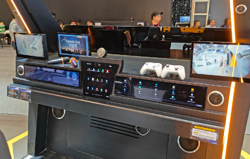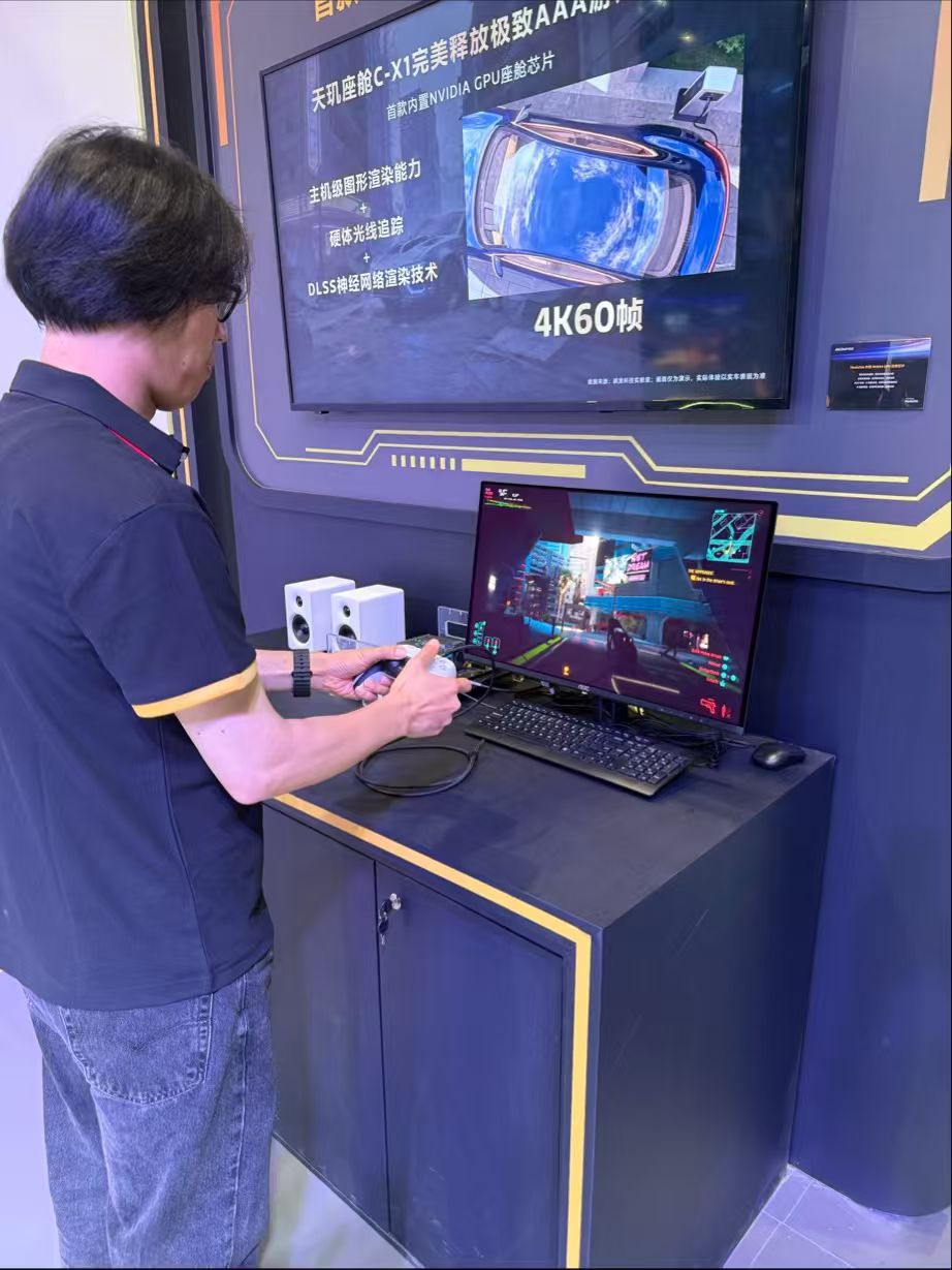 除了核心的智能体座舱体验,联发科在现场还展示了基于天玑汽车平台打造的车载 3A 娱乐与前沿联接解决方案。搭载旗舰座舱平台 C-X1 的演示机,凭借集成的 NVIDIA RTX GPU 光线追踪与 DLSS 技术,实现了 4K 60FPS 的稳定图形渲染,运行主机级 3A 游戏时光影效果逼真,操作无延迟卡顿。