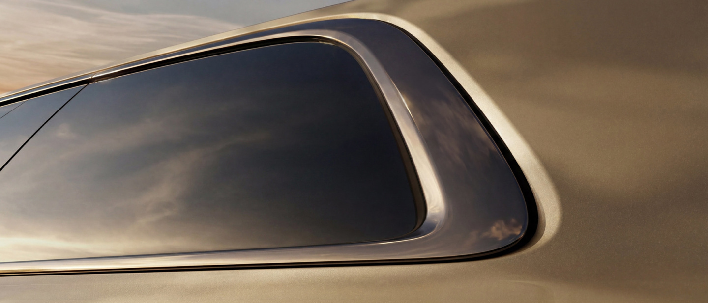 新车采用了行业首创的晶灰镀铬饰条。不像传统的镀铬饰条是明晃晃的银白色,而是暗雅的深灰色,同时保留了非常漂亮的镜面效果,和金色的车身共同创造出和谐的光影效果。
