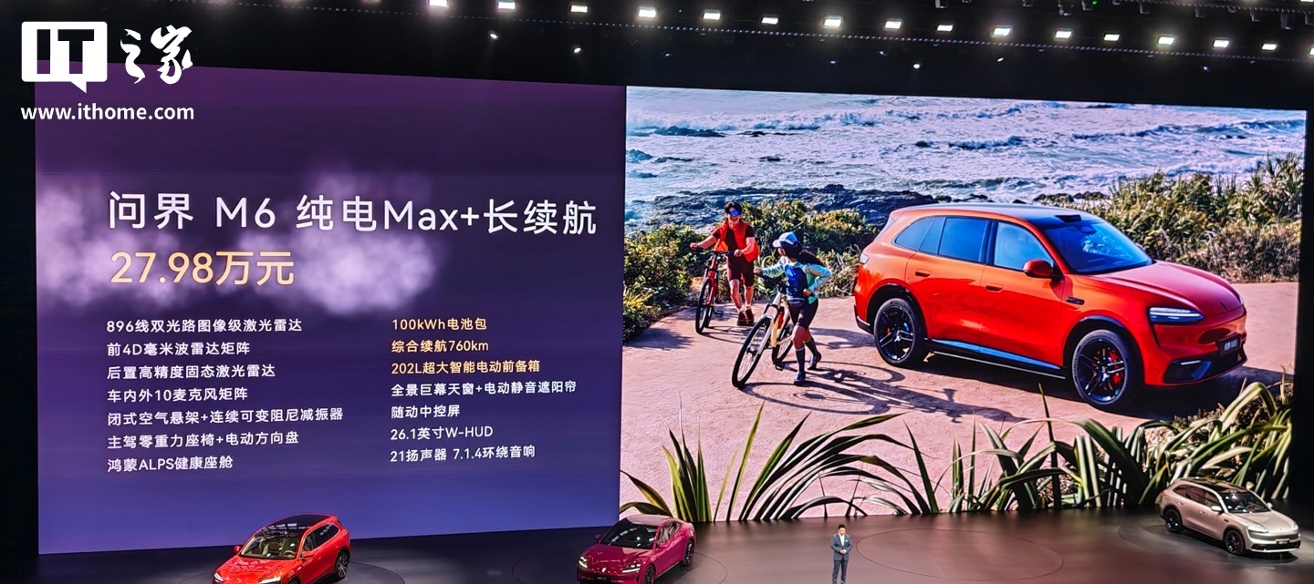IT之家注意到,鸿蒙智行问界 M6 汽车上市 15 分钟大定已突破 10000 台。新车定位“新锐智慧 SUV”,标配全球量产最高 896 线激光雷达,售价 25.98 万元起。