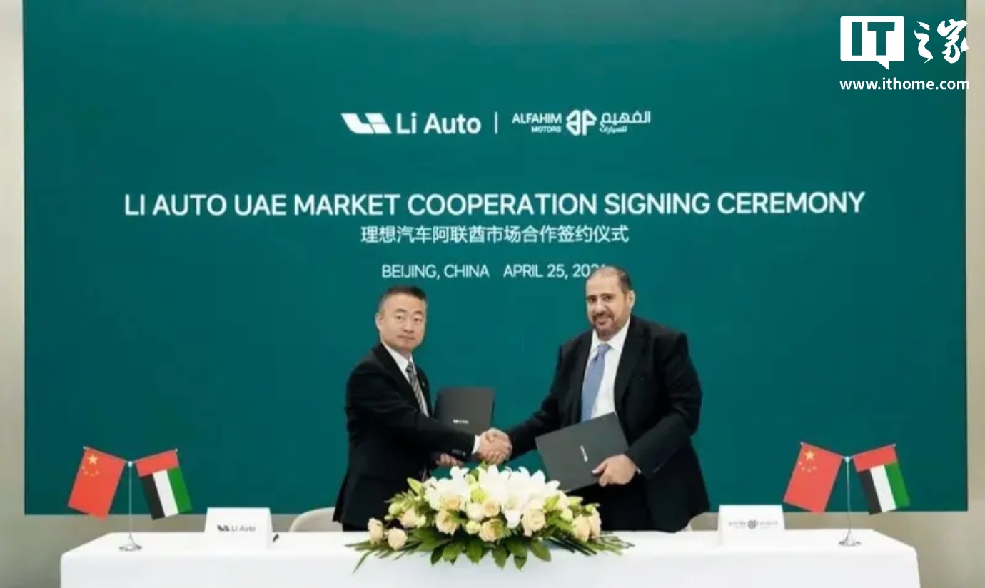 IT之家 4 月 28 日消息,理想汽车宣布已于当地时间 4 月 25 日与阿联酋 Al Fahim Motors、沙特阿拉伯 Mohamed Yousuf Naghi Motors 共同举行合作签约仪式,后续理想汽车将携理想 L 系列进入中东市场。