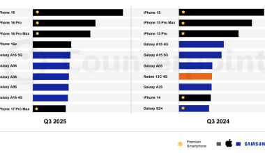 CounterPoint 报告 2025Q3 全球手机畅销榜:iPhone 16 夺冠,5G 手机首次包揽前五
