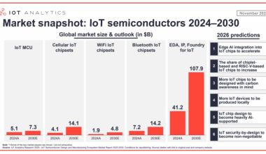 沐曦、摩尔线程上市,中国半导体进入新阶段。2026年物联网半导体行业将迎六大拐点,包括边缘AI普及、Chiplet与RISC-V份额增长、碳足迹成设计硬指标等。