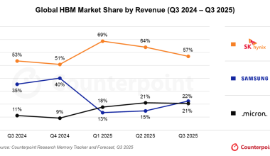 Counterpoint:2025Q3 三星 HBM 营收反超美光,整体 DRAM 收入仍略逊 SK 海力士