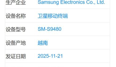 三星新机SM-S9480现身工信部,或为Galaxy S26 Ultra国行版,支持天通卫星通信、5G-eMBB技术,搭载Android系统,兼容eSIM,支持60W有线充电。