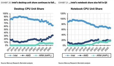 苹果仅用5年就追上AMD!M系列芯片市占率已逼近20%